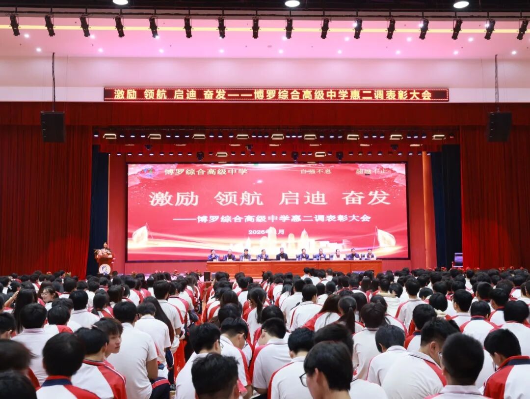 行者常至,为者常成。 为表彰先进、鼓舞斗志,营造全力以赴、奋勇争先的备考氛围,1月27日我校2026届高三年级在学校大礼堂隆重举行惠二调表彰大会。学校领导及高三年级全体师生共同参加了本次大会。