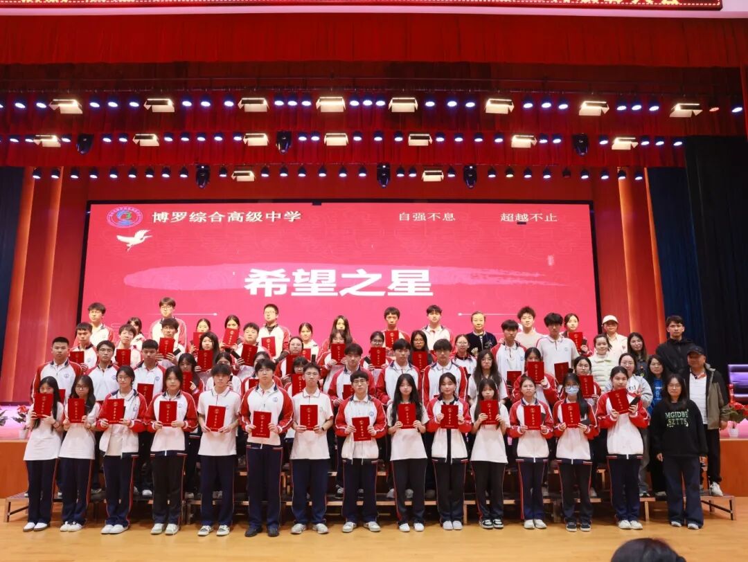 大会依次对在本次考试中表现优异的460多名同学予以表彰。奖项涵盖“希望之星”“进步之星”“优秀特长生”“单科前三名”以及“学习之星” 等多个类别。获奖学子分批上台领奖,接受来自学校领导与班主任的诚挚祝贺。